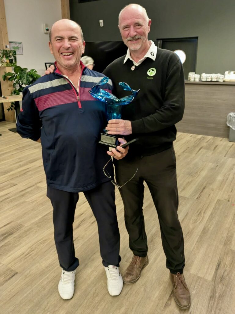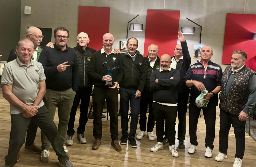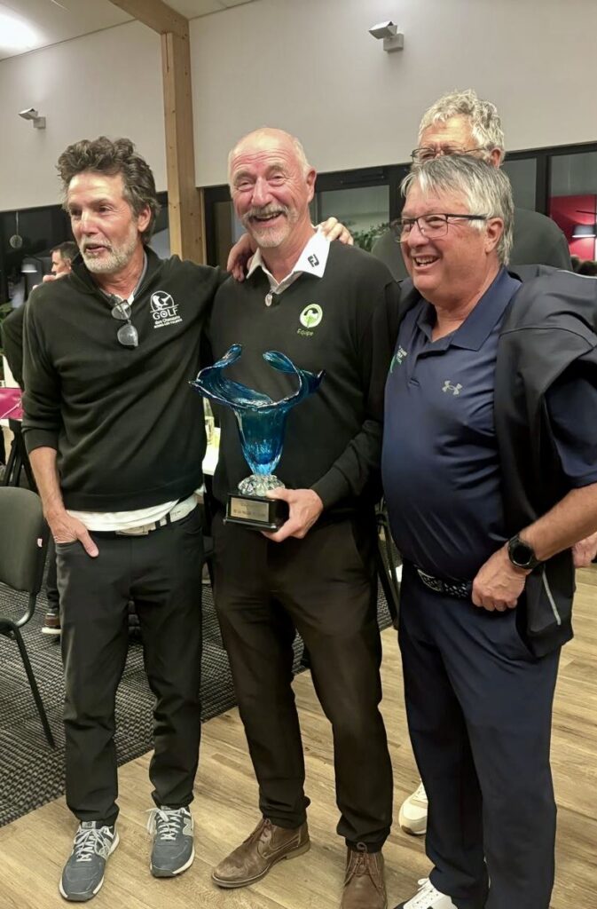 En « Coupe Vallée du Rhône », la finale se déroulait le 30 octobre sur le golf de Chassieu. Tout était à faire, puisque notre équipe était seconde à 2 points du premier, le club des Chanalets. L’équipe était composée de Jean Christian BRUEYRE, Daniel BRUGUIER, Patrick CHAZE, Daniel CHEVET, Christian FERRARO, Jean Marie FONTANILLE, Jean Pierre GOUTORBE, Philippe MACOU, Romain RAILLON, Philippe RENOUX et du capitaine Alain GEVAUDAN. A l’issue des parties de l’après-midi, notre équipe a terminé première des 7 équipes, à 3 points devant celle des Chanalets. Les points ont été apportés par Daniel BRUGUIER et Romain RAILLON avec, chacun 27 en Brut, et par Jean Pierre GOUTORBE et Christian FERRARO avec, chacun 37 en Net. Super performance de tous nos joueurs pour cette dernière rencontre. La Coupe est revenue à la maison (eh oui, car cette compétition a été créée par un membre de la Valdaine, Georges BATTAIL en 1992). A noter en résultat individuels sur l’année, Philippe MACOU remporte le classement final en net, et jean pierre GOUTORBE se classe troisième. Bravo messieurs. Une belle soirée animée (tirage au sort, karaoké,…) a terminé cette belle journée pour notre équipe. Bravo aux 23 joueurs de l’année qui ont représentés la Valdaine dans cette compétition. Vous pouvez être fiers de vous. Nous avons la coupe. Vivement 2026 pour la défendre.