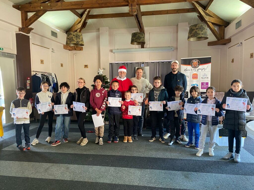 Puis est venue l’heure de la récompense du travail de chacun avec la cérémonie de remise des diplômes de passage des Drapeaux. Cette cérémonie a été suivie de la distribution des cadeaux aux enfants. En effet, grâce aux différents sponsors, chaque enfant de l’Ecole de Golf a reçu un pochon contenant un cache-cou bi-matière qui peut se porter de 6 façons différentes (en bonnet, en cagoule, en cache-nez…) : accessoire idéal pour permettre à nos Fox et Foxettes d’affronter le temps hivernal actuel.