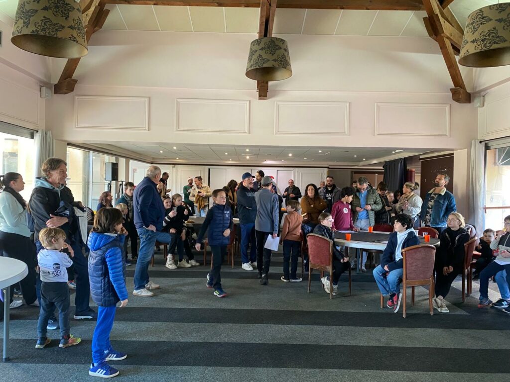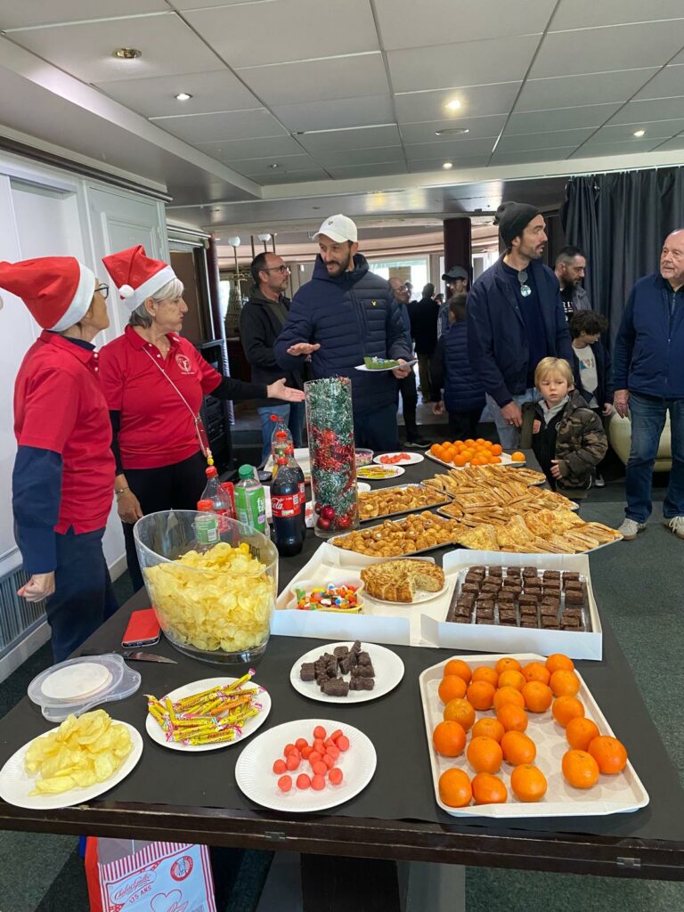 Avant l’arrivée des convives, tous s’étaient activés pour mettre en place le sapin magnifiquement décoré, le fauteuil pour recevoir le Père Noël ainsi que la salle de réception et le sympathique buffet. Renald de la Paillote 19 a fourni les croque-monsieur et gougères et il a offert les boissons : merci à lui et son équipe !