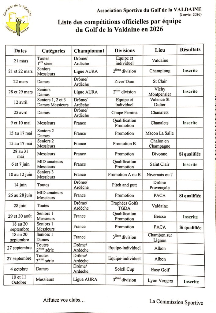 Les inscriptions étant closes, les tableaux des matchs ont été finalisés et sont affichés sur le panneau d’affichage situé sous le porche à l’entrée du golf. Ils sont aussi accessibles par le bouton « Championnat du club 2025 » de cette page. Bons matchs à tous les participants !